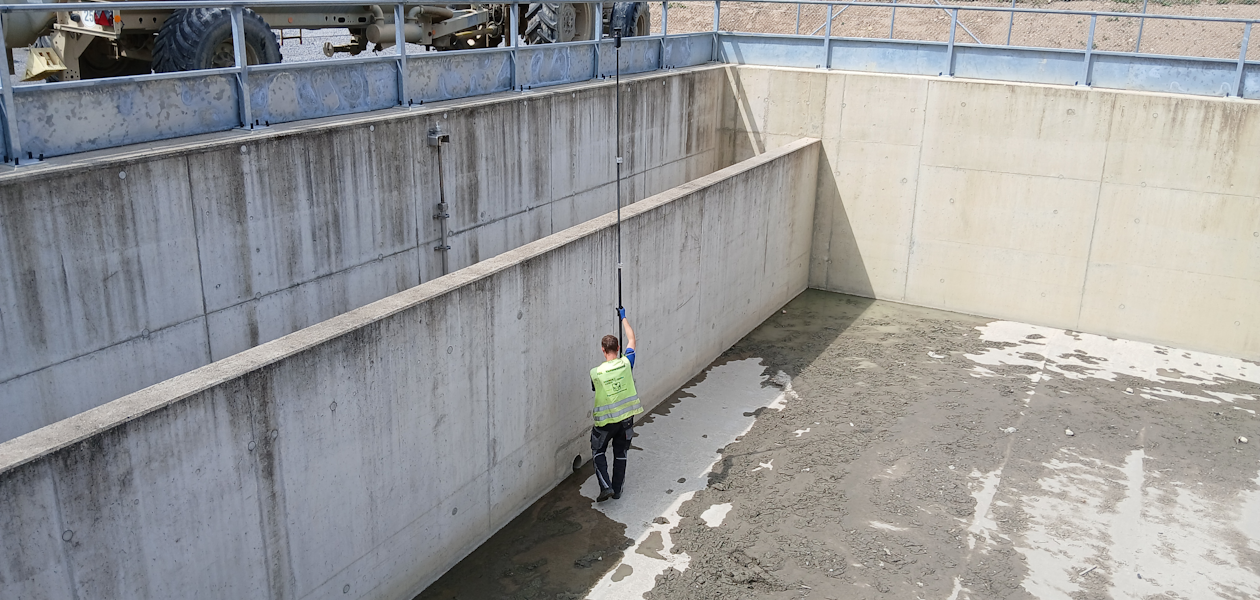 Im Rahmen einer Bestandsaufnahme haben wir kürzlich ein Regenrückhaltebecken unterhalb einer Autobahnbrücke vermessen. Ziel war es, die vorhandene Geometrie sowie die hydraulisch relevanten Elemente exakt zu erfassen – inklusive Ein- und Auslaufbauwerke.