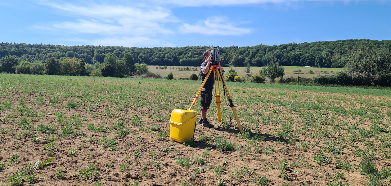 Mitunter ist die Arbeit eines Vermessers auch ein richtiger Knochenjob - wie beim Einschlagen einer Bodenhülse.